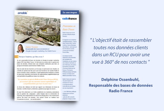 Delphine Ossenbuhl, en charge des bases de données et des projets marketing chez Radio France, nous parle de son expérience avec Amabis et des raisons qui ont poussé le groupe à initier un projet RCU – Référentiel Client Unique.